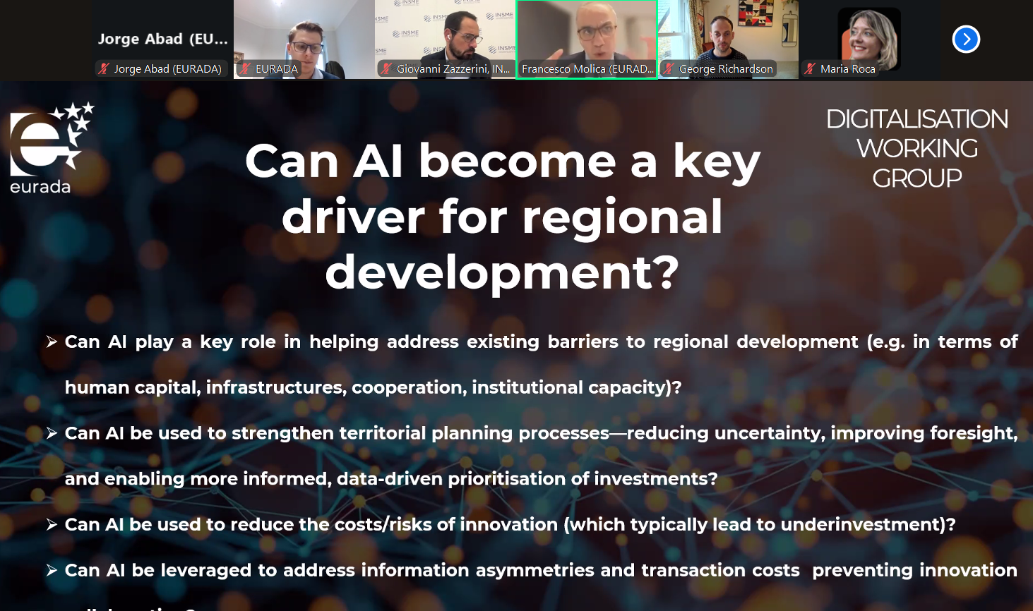 The discussion highlighted how Artificial Intelligence (AI) is rapidly reshaping economic and social systems, and how regional development agencies can position themselves to make the most of this technological shift.
